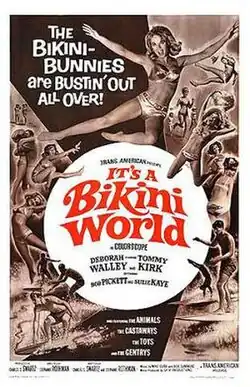 It's a Bikini World is a 1967 American musical comedy film starring Tommy Kirk, Deborah Walley and Bobby Pickett. The film features cameos by the music groups the Gentrys, the Animals, Pat & Lolly Vegas, the Castaways and R&B girl group the Toys. Featuring a pro-feminist plotline, it is the only film in the beach party genre to be directed by a woman (Stephanie Rothman).[1]