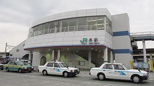 Izumi Station (泉駅, Izumi eki) is a railway station on the Jōban Line in the city of Iwaki, Fukushima, Japan, operated by East Japan Railway Company (JR East). The station also has a freight depot for the Fukushima Rinkai Railway Main Line.