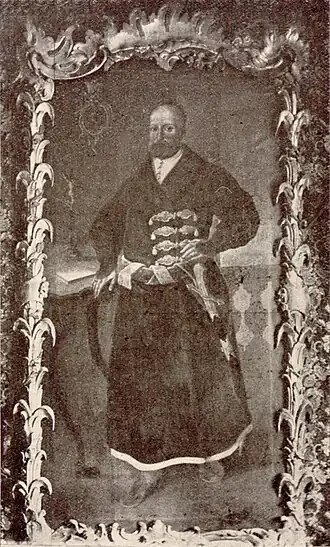 Jozef Glubotsky came from Korsak family, one of the oldest and richest in the Principality of Polotsk, and later in the Grand Duchy of Lithuania and the Polish–Lithuanian Commonwealth. Korsak was the son of Leo and Marianne Podbipenty. He received a good education and owned Latin and several European languages. Korsak was member of the Polish–Muscovite War (1605–18). He distinguished himself in the army of Sigismund III Vasa at the time of the Battle of Smolensk in 1610, in 1617 he took part in the march of Władysław IV Vasa to Moscow. In 1623 he was distinguished for service to the king, granted Disnensk eldership and more later - Kurilovsky and Filippovskaya eldership. In 1626, for military service he was sent as a gift to the Antonov in Mazyr Powiat. In 1633, during the Smolensk War, at its own expense he equipped a troop of soldiers, with whom defended Disnensky lock. Since 1634 Korsak was elder and the first Mstislavl Bailiff, in 1639, he was appointed commander of the Mstsislaw Voivodeship. Being Orthodox, under the influence of his cousin, Polotsk Uniate Metropolitan Rafajil Korsak he converted to Uniate Church. In 1628 Jozef Korsak founded the church of the Holy Trinity (current and ongoing) in Hlybokaye, Belarus and in 1638 the monastery of the Uniate Basilian Order and in 1639 the church and convent of the Order of Discalced Carmelites in the same city. Construction of the Carmelite church, to which he devoted special attention, began immediately, being in 1639 under the personal guidance of Ktitor. In the summer of 1643 Jozef Korsak died suddenly, being childless, having to confirm his will in which Carmelites received possession of the place in Hlybokaye, 26 villages, folwark, mills and forests. He was buried in the crypt of the Cathedral of the Nativity of the Virgin Mary where the remains were dumped here in the second half of the 19th century when Russian government made this church an orthodox one.[1]