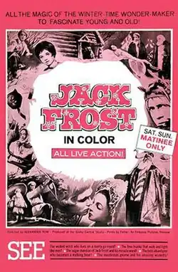 Jack Frost (Russian: Морозко, Morozko) is a 1964 Soviet romantic fantasy film made by Gorky Film Studio. It was based on a traditional Russian fairy tale Morozko. It was directed by Alexander Rou, and starred Eduard Izotov as Ivan, Natalya Sedykh as Nastenka, and Alexander Khvylya as Father Frost. The script was written by Nikolai Erdman. The soundtrack was composed by Nikolai Budashkin, who was inspired by the works of Nikolai Rimsky-Korsakov. A version with an English dub was released in 1966 in the U.S. and was spoofed on the TV series Mystery Science Theater 3000.[1][2][3]