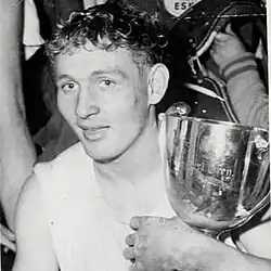 Jackie Parker holding the Grey Cup following the 1954 championship game