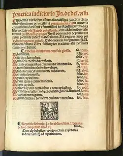 Jacobus de Belviso[1] (c. 1270 – 1335) was an Italian jurist from Bologna. His later reputation was based on the text Practica criminalis on criminal law printed under his name in 1515. This is, however, no longer believed to be his work.