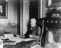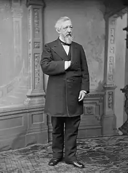 Blaine received the news at his home in Washington and telegraphed Hayes his congratulations.[71] In the subsequent contest of 1876, Hayes was elected after a contentious compromise over disputed electoral votes.[72] The results of the convention had further effects on Blaine's political career because Bristow, having lost the nomination, resigned as Treasury Secretary three days after the convention ended.[71] President Grant selected Senator Lot M. Morrill of Maine to fill the cabinet post, and Maine's governor, Seldon Connor, appointed Blaine to the now-vacant Senate seat.[71] When the Maine Legislature reconvened that autumn, it confirmed Blaine's appointment and elected him to the full six-year term that would begin on March 4, 1877.[71][d]