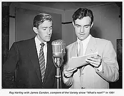 Also in 1961, while hosting his variety show What's Next, Condon hosted an old friend from Perth, Ray Hartley, to talk about his recent successes in London and New York.[5] Hartley was a world-class Australian pianist, composer, arranger and philanthropist.