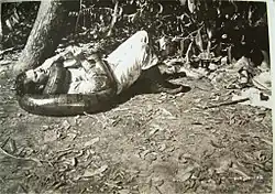 In Jacaré (1942) Dannaldson traveled up the Amazon to catch specimens. In the film, Dannaldson worked with jaguars and caymans, whose jaws had been wired shut. He said his only close call came when an anaconda he wrestled got a loop around his neck and almost strangled him before the natives could unwrap it. Dannaldson's most primitive adventure occurred on Marajó Island, at the mouth of the Amazon, where the movie company spent four weeks, ran out of imported food and had to subsist for five days on moldy doughnuts filled with small worms and on chickens which, Dannaldson said, seemed to be 90 per cent vulture.[3] Producer Jules Levey incorporated a narration by Frank Buck and music by Miklos Rozsa into the finished film.[4] Dannaldson came home from the Amazon with a rare eagle from Manaus, obtained as a fledgling from a native hunter. Dannaldson presented the eagle to the San Diego Zoo in 1943.[5]