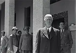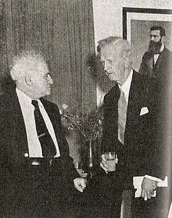He strongly opposed the U.S. Government's refusal to recognise Israel's occupation of Jerusalem. His request to the State Department for permission to attend the opening session of the first Knesset in Jerusalem was turned down. He used his position to avoid any highlighting of this policy.[14] On 29 July 1950, he broke the ban on conducting official business in the city when he held a meeting with David Ben-Gurion to discuss the outbreak of the Korean War.[15]