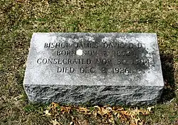 James Davis died in Davenport on December 2, 1926. He was interred in the crypt of Sacred Heart Cathedral. His remains, along with those of the other bishops, were later moved to the Bishop's Circle in Mt. Calvary Cemetery in Davenport.