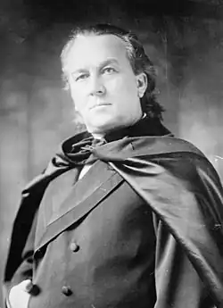Known as "The Great White Chief", Vardaman had gained electoral support for his advocacy of populism and white supremacy, saying: "If it is necessary every Negro in the state will be lynched; it will be done to maintain white supremacy."[1] Aligning with economically left-wing populists and favoring progressive reforms in railing against banks, railroads, and tariffs,[2] he appealed to the poorer whites, yeomen farmers, and factory workers. Vardaman's tenure as Governor of Mississippi was marked by his advocacy of regulating corporations, enacting child labor laws, segregating streetcars, ending educational opportunities for African Americans, and defending lynching.[3] After finishing his term, he defeated Democratic incumbent LeRoy Percy, a member of the planter elite, in the primary for the 1912 U.S. Senate election,[4] and was then elected unopposed in the general election.[5]