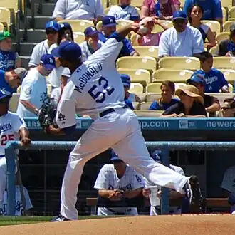 He made his professional debut pitching for the Gulf Coast Dodgers in 2003, where he compiled a modest 3.33 ERA with 47 strikeouts over 48.2 innings of work, although unfortunately a case of tendinitis prevented him from pitching in 2004 and most of the 2005. But instead of opting for a rehab program, McDonald and others were still interested in his hitting ability. He made the switch to outfield, thinking he could still work with trainers while keeping occupied in left field, but after sub-.230 batting averages in '04 with the Gulf Coast Dodgers and again in 2005 with the Ogden Raptors, he expressed his desire to return to pitching. "When I was in the outfield, I felt like I was just running around. I am a lot more competitive when I'm pitching, it's more up to me to get guys out." he explained to Bill Shelley. In 2006, he was back on the hill full-time for the South Atlantic League's Columbus Catfish where he led the pitching staff with an ERA of 3.97 and 147 strikeouts in 143 innings of work but only managed to finish with a record of 5–10.[3] McDonald started 2007 with the Inland Empire 66ers before he was promoted to the Double-A Jacksonville Suns. He was named the Dodgers' Minor League Pitcher of the Year in 2007.[4] In August 2008, he was promoted to the Dodgers Triple-A affiliate, Las Vegas 51s. He went 1–0 in his first two starts, striking out 20 batters in that span. He was called up to the Dodgers on September 1, 2008. He made his major league debut on September 17, 2008, against the Pittsburgh Pirates, working one scoreless inning in relief. In February 2009, McDonald was named the #56 prospect in baseball by Baseball America.[5] McDonald then earned a spot in the Dodgers' starting rotation to begin the 2009 season and started his first game in the majors on April 10, 2009, at Chase Field against the Arizona Diamondbacks, allowing five runs in a little over two innings. He made three more starts, only lasting as many as five innings in one (April 25 against the Colorado Rockies, his first career victory), and then was demoted back to the bullpen. With an ERA of 6.75, he was optioned back to AAA on May 14, and then recalled by the Dodgers on June 19. After being recalled, he pitched exclusively out of the bullpen the rest of the season. McDonald began 2010 in the starting rotation for the Albuquerque Isotopes. He was recalled by the Dodgers to start the game on July 19 against the San Francisco Giants. He made a few additional appearances in the bullpen for the Dodgers.