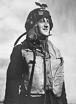 James Reginald Bryan Meaker was born on 19 January 1919 in Kinsale, County CorkIreland. His parents were from Sussex, his father serving in Ireland as an officer in the British Army's Royal Fusiliers. Meaker went to Chichester High School and once his education was completed, found employment as a reporter at the Chichester Observer. In June 1939, he joined the Royal Air Force (RAF) on a short service commission. Meaker commenced training at No. 6 Elementary & Reserve Flying Training School at Sywell Aerodrome and then proceeded to No. 12 Flying Training School at Grantham.[1][2] He was commissioned as an acting pilot officer on 19 August.[3]