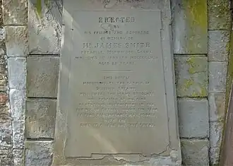 - ^ Find A Grave, database and images (https://www.findagrave.com : accessed 13 March 2020), memorial page for James Smith (1763–1 Jan 1848), Find A Grave Memorial no. 188100030, citing Auld Kirk Burying Ground, Ayr, South Ayrshire, Scotland ; Maintained by William Weston (contributor 49153494) .