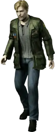 James Sunderland was introduced as the protagonist of the 2001 Konami survival horror game Silent Hill 2, produced by the group Team Silent.[1] He is a widower of white descent with blonde hair, wearing an army jacket, gray polo shirt, and jeans.[2] At age 29 by the time of the game's events, his previous occupation was as a store clerk. Prior to the game's events, he decided to travel to the tourist resort of Silent Hill, located in the American state of Maine, because of a supposed letter from his deceased wife Mary Shepherd-Sunderland.[3]