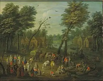3. ^ Jan Baptist Monteyne, A village landscape with a crowd of peasants and fishermen at Christie's
