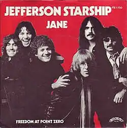 "Jane" is a song by American rock band Jefferson Starship, released on their 1979 album Freedom at Point Zero. The song peaked on the US Billboard Hot 100 at No. 14 and spent three weeks at No. 6 on the Cash Box Top 100.[1] Billboard Magazine described "Jane" as "a fiery track paced by stinging guitars and some burning rhythm work."[2] Cash Box described it as "an explosive rocker, with slashing guitars."[3] Record World called it a "driving rocker" and praised Mickey Thomas' vocals.[4] GQ in 2015 said it was a "perfect, complex, trash-gem work of art."[5]