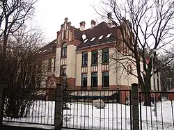 The art high school has its beginning in 1895, when the Latvian Painters Society established a painter's school. In 1928 the school changed its name to Latvian Painters Crafts Promotion and Relief Society Vocational School (Latvian: Latvijas daiļkrāsotāju amatniecības veicināšanas un palīdzības biedrības aroda skola), which again was changed in 1944 to Riga Secondary School of Art (Latvian: Rīgas Mākslas vidusskola), in 1946 to Janis Rozentāls Art High School, in 1998 to Janis Rozentāls Art College (Latvian: Jaņa Rozentāla Rīgas Mākslas koledža), on 18 March 2002 to Janis Rozentāls Riga Art High School (Latvian: Jaņa Rozentāla Rīgas Mākslas vidusskola).[1]