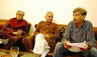 Iftikhar Arif (left), Mohammad Hameed Shahid (centre) and Jawayd Anwar (right) in Islamabad on 21 November 2011; days before Anwar's death