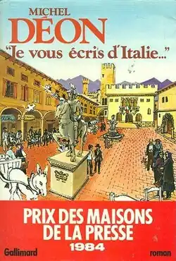 Je vous écris d'Italie ("I write to you from Italy") is a 1984 novel by the French writer Michel Déon. It is set in Italy in the summer of 1949 and follows a young French historian who tries to solve a mystery connected to a secret pagan festival. The novel received the Prix Maison de la Presse.[1]