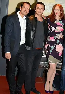 Jean-Baptiste Andrea (left) with Jérémie Renier and Audrey Fleurot, at a première of La Confrérie des larmes.