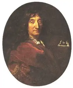Jean de La Fontaine (UK: /ˌlæ fɒnˈtɛn, -ˈteɪn/,[1] US: /ˌlɑː fɒnˈteɪn, lə -, ˌlɑː foʊnˈtɛn/;[2][3] French: [ʒɑ̃ d(ə) la fɔ̃tɛn]; 8 July 1621 – 13 April 1695) was a French fabulist and one of the most widely read French poets of the 17th century. He is known above all for his Fables, which provided a model for subsequent fabulists across Europe and numerous alternative versions in France, as well as in French regional languages.