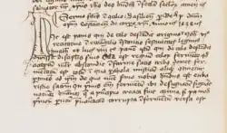 Jean's surname is spelled many different ways in the sources. It may refer to one of the places known as Rouvroy, but it is impossible to know which one.[1] In 1388, Jean was a student at the College of Navarre in Paris. He would have been around fifteen years old at the time, born about 1373. In 1403, he signed a petition addressed to King Charles VI on behalf of the masters of arts of Paris. In 1404, he was a secretary of Louis I, Duke of Orléans. The assassination of Louis in 1407 sent him back to school. He read the Sentences in 1408 and by 1413 was a bachelor of theology. He opposed Jean Petit's defence of tyrannicide.[2] He had obtained his masters in theology by 1416. In October 1416, he was named master of the Collège Fortet on the condition that he take holy orders, being then only a subdeacon.[1]