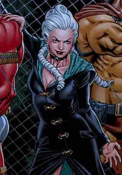 In her first appearance several centuries later, Jeannette is shown to run a casino in Las Vegas, Nevada.[2] Her status as a villain was not made explicit, but due to her apparent relationship with her soon-to-be teammate Scandal Savage, it is implied that she had engaged in some unsavory business prior to her introduction. Eventually, she is shown to have been detained in several prisons over the course of her long life for unspecified crimes.[3]
