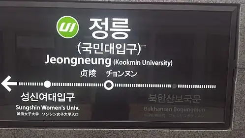 1. ^ "도시철도 우이-신설선 역명제정 및 다국어 표기 알림".