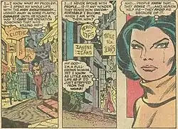 Jessica Drew's feelings of isolation from other people were a major theme of the first year and a half of her series. Scene from Spider-Woman #2 (May 1978); story by Marv Wolfman, pencils by Carmine Infantino, inks by Tony DeZuniga.