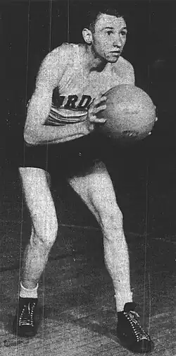 Following the completion of his collegiate career, Young played professionally with the Indianapolis Kautskys of the National Basketball League until the Kautskys ceased operations in 1942 due to World War II. Young played one season with the Oshkosh All-Stars in 1942–43, then completed his NBL career with the Kautskys in 1946.[2] In his five NBL seasons, he averaged 7.8 points per game.[1] He was the league Rookie of the Year in 1938–39 and was an NBL All-Star in 1938–39 and in 1941–42[3] He later became a high school coach for 17 years for Southport High School in Indianapolis.[4]