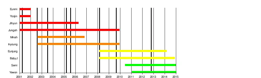 • Park Jung-ah (박정아) (2001–2010) – main vocalist, lead dancer
