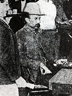 James Brown Miller (October 25, 1861 – April 19, 1909), also known as "Killin' Jim", "Killer Miller" and "Deacon Jim", was an American outlaw and title-holder gunfighter of the American Old West, said to have killed 12 people during gunfights.[1] Miller was referred to by some by the alias "Deacon Jim" because he regularly attended the Methodist Church, and he did (not) smoke or drink. He was lynched in Ada, Oklahoma, in 1909 along with three other men, by a mob of residents angry that he had assassinated a former deputy U.S. marshal.
