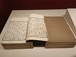 The Jingdian Shiwen, often simply referred to as the Shiwen by Chinese philologists, was a Chinese dictionary compiled by the scholar Lu Deming c. 583. Based on the works of 230 scholars whose work spanned the Han, Wei, and Six Dynasties periods, the work provides exegetical commentary on the evolution of words present in the Confucian Thirteen Classics and the Daoist Tao Te Ching and Zhuangzi.[1] Namely, it tacks the gradual shifts in both the meaning and pronunciation of classical words. to It also cites numerous ancient works that no longer exist; citations which for some constitute the only documentary evidence of their previous existence.