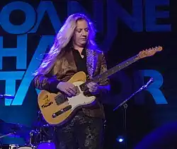 The discography of Joanne Shaw Taylor, a British blues rock musician, consists of ten studio albums, two live albums, two extended plays (EPs), 30 singles, one video album and 15 music videos. Taylor released her first album White Sugar on Ruf Records in 2009, which reached number 36 on the UK Independent Albums Chart and number 13 on the UK Jazz & Blues Albums Chart.[1] The 2010 follow-up Diamonds in the Dirt charted at numbers 34 and 13, respectively, before 2012's Almost Always Never reached the Independent Albums Chart top 20 and topped the Jazz & Blues Albums Chart.[1] After her first live album Songs from the Road in 2013, Taylor released The Dirty Truth on Axehouse Music, which registered on the main UK Albums Chart for the first time in her career, peaking at number 41.[1] Wild, also on Axehouse, gave the musician her first UK top 20 when it peaked at number 19.[1]