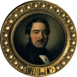 Joaquín María López y López (15 August 1798 – 14 November 1855) born Joaquín María López de Oliver, López de Platas y López de Cervera was a Spanish politician, writer and journalist who served twice as the Prime Minister of Spain in 1843, during the reign of Queen Isabella II. López held other important political offices such as Minister of the Interior (1836–1837) and Mayor of Madrid in 1840.