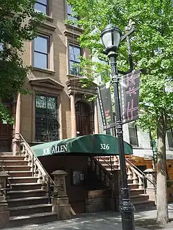 Joe Allen is an American restaurant known as a Broadway meeting place for working actors, theater staff and fans – very much an industry institution. The restaurant is located on West 46th Street in Hell's Kitchen, Manhattan, and was opened in 1965 by a restaurateur of the same name.[1][2] Joe Allen is known for having its wall lined with posters of Broadway flops such as Laughing Room Only, Moose Murders, and Dance of the Vampires.[3] The restaurant featured in scenes in the films No Way to Treat a Lady (1968) and Woody Allen's Melinda and Melinda (2004).