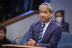 Emmanuel Joel Jose Villanueva[2] (/vɪljɑːnuːwɛbɑː/, born August 2, 1975), nicknamed "Tesdaman",[3] is a Filipino politician is the Senate Majority Leader since 2025, he previously served the position from 2022 to 2024 and has been a Senator since 2016. He previously served as the Director General of the Technical Education and Skills Development Authority (TESDA) from 2010 to 2015 in the administration of President Benigno Aquino III. He started his political career in the House of Representatives, representing CIBAC party-list from 2002 to 2010; at the age of 26, he was the youngest member of the House when he assumed office. He is a son of evangelist and politician Bro. Eddie Villanueva, founder of Jesus Is Lord Church Worldwide.