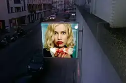 Grimonprez made his international debut on the art circuit at the documenta X in Kassel with his Dial H-I-S-T-O-R-Y in 1997.[57] Ten years later, the first retrospective of his work, Johan Grimonprez - Retrospective 1992–2007, was exhibited at the Pinakothek der Moderne in Munich, 2007.[58] It's a Poor Sort of Memory that Only Works Backwards followed as the first large-scale retroperspective of Grimonprez in his home country, Belgium, in the Stedelijk Museum voor Actuele Kunst (SMAK) in Ghent, 2011–2012.[59] Artforum described the exhibition as "an unfamiliar archive [...] from the perception of fragments to the awareness of a common mentality, from the multiplicity of words to the emergence of a discourse".[60] Several artists, among Roy Villevoy, Jan Dietvorst and Adam Curtis, were invited to contribute to this exhibition. A prominent aspect in Grimonprez's work is the sky: "a canvas on which man has always projected his mystical aspirations, his political and economic struggles, and his poetic imaginings. They abstract spaces into which the very real histories of contemporary societies are woven".[60] According to Artforum, the critical dimension of Grimonprez's work follows close behind the "aesthetic of disaster and terror and the virtues of channel surfing in order to plunge the viewer into a state of genuine fascination".[60] Using repetition and delay, Grimonprez works towards a second glance; a double take - just like his feature-length film Double Take (2009), and "the state of confusion in which we are kept by the media machine".[60] Artforum states that Grimonprez "does not harangue us with denunciations but rather suggests that we reconsider the short circuits of this machine, of which we briefly catch glimpses".[60] It's a Poor Sort of Memory that Only Works Backwards also exhibited at the Blaffer Art Museum in Houston, 2011[61] and the retrospective Johan Grimonprez exhibited in The Fruitmarket Gallery in Edinburgh, 2010.[62][63]