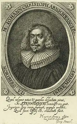 2. ^ a b Biographie, Deutsche. "Arnschwanger, Johann Christoph - Deutsche Biographie". www.deutsche-biographie.de (in German). Retrieved 2022-11-04.