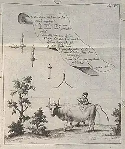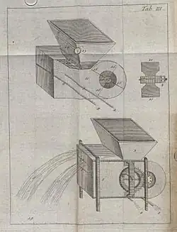 In other writings, Mayer started describing the farmer relationships in natural farming and animal husbandry. In 1767 he started publishing the journal Beyträge und Abhandlungen zur Aufnahme der Land- und Hauswirthschaft, which he would publish until 1786.[2] In addition to spreading his knowledge through books and magazines, Mayer traveled around and advised princes and peasants. He was invited to move to Vienna, both by Emperor Maria Theresia and Archbishop Christoph Anton Migazzi, but he declined.[2] He advised the Hohenlohe peasants among other things about the cultivation of the still unknown potato. At first he only recommended the potato to feed livestock, and later mainly for human consumption.[5]