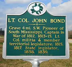 Lt. Colonel John Bond Jr. (1770 − October 22, 1862) was an American military officer, Mississippi pioneer, and Mississippi Legislator.