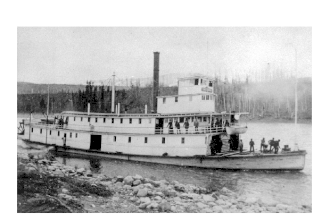 By 1898, the Klondike Gold Rush was in full swing and there was more interest in the north than ever previously. A business rival of the Hudson's Bay Company, Robert Cunningham, bought the Monte Cristo and hired Captain Bonser away from the HBC to pilot it. Then in 1900, Cunningham sent Bonser down to Victoria to design a sternwheeler specifically for the Skeena River. This would become the Hazelton and under Bonser’s command she soon proved to be superior to all the other boats on the river. In her first season, she went to Hazelton thirteen times, making the trip upstream in forty hours and downstream in ten. Realizing that the new HBC sternwheeler Strathcona and the Caledonia could not compete, the HBC built a third sternwheeler, the Mount Royal and hired Captain Johnson as her pilot.