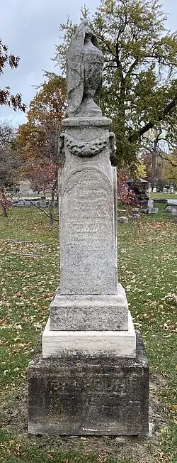 Calhoun died in Chicago on February 20, 1859. He was buried in Graceland Cemetery.[3] A memorial to him stands in Calhoun Place, which is located in what is now an alley in the Chicago Loop central business district.[6]