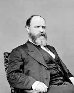 President Grant, at the beginning of his first term in office, initiated an attempt to annex the Dominican Republic, then known as Santo Domingo. President Grant believed that the annexation and eventual statehood of the island country would add to American mineral resources and serve as a refuge for African Americans, who were harassed by violence from the Ku Klux Klan.[10] At a White House reception on January 1, 1870, African Haitian minister, General Alexander Tate, attended. President Grant, who had no racial animosity, cordially shook General Tate's hand.[11] Other white dignitaries refused to associate with General Tate because he was black and ignored him at the reception. Postmaster Creswell, however, noticed that General Tate was being snubbed, and went over and had a pleasant conversation with him.[11]