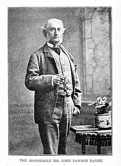 John Dawson Mayne (1828–1917) was a British lawyer and legal expert who served as acting Advocate-General of the Madras Presidency. He is remembered as the author of Mayne's Hindu Law regarded as the most authoritative book on the Indian Penal Code. His married life was marred by a scandal, which prevented him from gaining a knighthood.