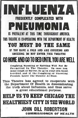A public health notice that was displayed in a Chicago theater amid the flu pandemic