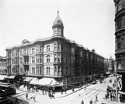 Hollenbeck Hotel in 1890 at the corner of Spring and Second, demolished in 1933