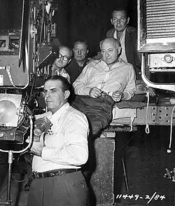 ![]() Warren (left), next to Soldier Graham and Cecil B. DeMille on the set of Samson and Deliah, 1949 | |