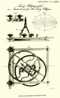 6. ^ James Smith. "Farey's Elliptograph: An Instrument for drawing Ellipses," in: The Mechanic; Or, Compendium of Practical Inventions, Vol 1, 1825, p. 48-53.