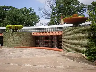 The John Frank House was designed in 1955 and built in 1956 in Sapulpa, Oklahoma, United States. It was designed by architect Bruce Goff. It was designed for John Frank, founder of Frankoma Pottery. It was specifically designed to showcase the Franks' love for pottery. John and Grace Lee Frank glazed and fired the ceramic tiles located throughout the house.[2]
