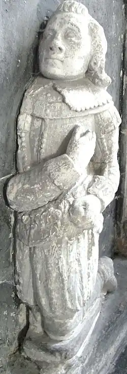 Of Giffard's daughters, Grace died at Sherborne in 1667 after being pricked by a fern.[12] Her reclining effigy exists in Chittlehampton Church,[18] as a remnant of her former large monument.[19] Another daughter, Agnes, was the second wife of Thomas Bere (1631–1680), lord of the manor of Huntsham.[20]
