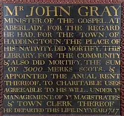 John Gray (23 February 1646 - 24 November 1717) was an Episcopalian minister of the Church of Scotland. In 1689, he 'became a non-juror'.[1] as part of the schism following the Glorious Revolution. Upon his death his 'valuable library'[2] was 'bequeathed to the Town of Haddington'[3] which is now at the National Library of Scotland having been deposited there in 1961.[4]